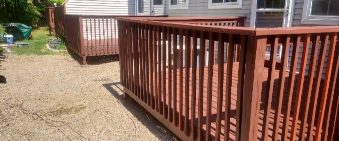 If your deck is covered in green and black mold, we will do a hard power wash and make the deck boards brand new again.